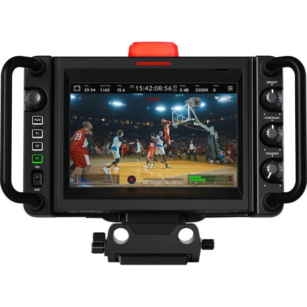 L’écran haute résolution de 7 pouces facilite le cadrage. Les modèles Pro comprennent un écran HDR très lumineux, ce qui est idéal pour filmer en plein soleil. Vous verrez sur l’écran des informations d’état, des paramètres d’enregistrement, un histogramme, des indicateurs d’aide à la mise au point, des niveaux, des repères de cadrage et bien plus. Vous pouvez même appliquer des LUTs 3D pour le monitoring des plans avec le look et les couleurs de votre choix. L’écran tactile dispose également de menus. Vous pouvez charger et personnaliser des préréglages pour différents projets. Le pare-soleil inclus peut être plié pour protéger l’écran lors du transport et il est compatible avec les pare-soleil du Blackmagic Studio Viewfinder.